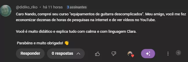 Agora, toda essa experiência, pesquisa e dedicação estão condensadas no curso **DOMINANDO O TIMBRE**. Nando Moraes não quer apenas te ensinar a usar pedais; ele quer te dar as ferramentas para que você pare de perder tempo e dinheiro, e comece a criar o seu próprio som com confiança. Ele transformou a sua própria jornada em um guia definitivo para que você, guitarrista, possa finalmente dominar seu timbre e expressar sua musicalidade sem limites.